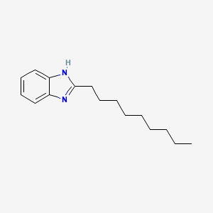 2-Nonylbenzimidazole (CAS: 5851-50-3; molecular formula: C₁₆H₂₄N₂) is a benzimidazole derivative featuring a nine-carbon alkyl chain (nonyl group) at the 2-position of the benzimidazole core. This compound is structurally characterized by a fused benzene and imidazole ring system, with the nonyl substituent enhancing its lipophilicity and steric bulk. Benzimidazole derivatives are widely studied for their pharmacological and materials science applications due to their tunable electronic properties and biological activity . Notably, this compound has been utilized in coordination chemistry, particularly in Cu-based polymers for carbon-efficient CO₂ electroreduction to multi-carbon products, where its hydrophobicity facilitates CO₂ diffusion and stabilizes reaction intermediates .