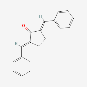 The synthesis of this compound is primarily achieved through a base-catalyzed crossed aldol (B89426) condensation, specifically known as the Claisen-Schmidt condensation.[1][2] This reaction involves the condensation of an enolizable ketone, in this case, cyclopentanone (B42830), with two equivalents of an aromatic aldehyde that lacks α-hydrogens, such as benzaldehyde (B42025).[2]