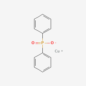 Copper(I) diphenylphosphinate (Cu(O₂PPh₂)) is a coordination compound of significant interest due to its utility as a precursor for advanced materials. Notably, it has been employed as a key building block in the synthesis of sophisticated, non-interpenetrated woven covalent organic frameworks (COFs), where the bulky diphenylphosphinate anion plays a crucial role in templating the framework structure to avoid self-interpenetration and maximize accessible void space.[1][2][3] The compound consists of a copper(I) cation coordinated by the diphenylphosphinate anion ([Ph₂PO₂]⁻).