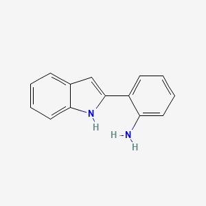 This compound is characterized by an indole ring system substituted at the 2-position with a 2-aminophenyl group. This arrangement of aromatic and heterocyclic moieties imparts specific chemical properties that are leveraged in the design of biologically active molecules.