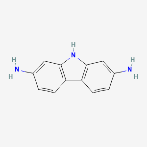 Chemistry: 9H-carbazole-2,7-diamine is used as a building block in the synthesis of various organic compounds, including polymers and dyes. Its unique structure allows for the formation of conjugated systems with interesting electronic properties .