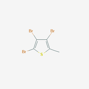 2,3,4-Tribromo-5-methylthiophene (CAS: 30319-06-3) is a halogenated thiophene derivative characterized by three bromine substituents at positions 2, 3, and 4, and a methyl group at position 4. This compound is synthesized via bromination of methyl-substituted thiophene precursors under controlled conditions, as demonstrated in the Journal of Organic Chemistry . Its high bromine content (62.44% theoretical Br) and steric effects from the methyl group make it a versatile intermediate in organic synthesis, particularly for pharmaceuticals and agrochemicals.