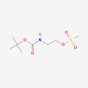 The mechanism of action of 2-((tert-butoxycarbonyl)amino)ethyl methanesulfonate involves the formation of a stable Boc-protected amine. The Boc group protects the amine from unwanted reactions during subsequent synthetic steps. The methanesulfonate group acts as a leaving group, facilitating nucleophilic substitution reactions. The Boc group can be removed under acidic conditions, revealing the free amine for further reactions .