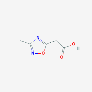 2-(3-Methyl-1,2,4-oxadiazol-5-yl)acetic acid is an organic compound featuring a five-membered heterocyclic ring containing two nitrogen atoms and one oxygen atom. This compound is known for its versatile applications in various fields, including medicinal chemistry, material science, and agrochemicals. Its unique structure allows it to participate in a wide range of chemical reactions, making it a valuable building block in synthetic chemistry.