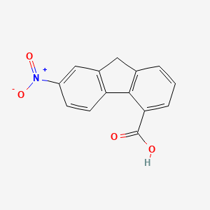 7-Nitro-4-fluorenecarboxylic acid (CAS 7256-04-4) is an aromatic monocarboxylic acid characterized by a fluorene backbone substituted with a nitro group at the 7-position and a carboxylic acid group at the 4-position. It is classified under HS code 2916399000 as an aromatic monocarboxylic acid derivative, with applications in organic synthesis and pharmaceutical intermediate development .