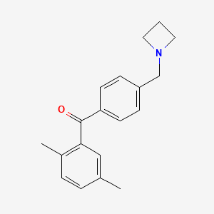 The mechanism of action of 4’-Azetidinomethyl-2,5-dimethylbenzophenone involves its interaction with various molecular targets. The azetidine ring can interact with biological macromolecules, leading to changes in their structure and function. The benzophenone core can undergo photochemical reactions, generating reactive intermediates that can further interact with cellular components. These interactions can result in various biological effects, including antimicrobial and anticancer activities.