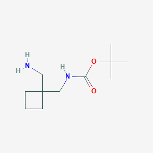 tert-Butyl ((1-(aminomethyl)cyclobutyl)methyl)carbamate is a chemical compound characterized by its unique structural features, including a tert-butyl group and a cyclobutyl ring. This compound has garnered attention in the fields of medicinal chemistry and biochemistry due to its potential biological activities, particularly as an intermediate in drug development and as a tool in enzyme mechanism studies.