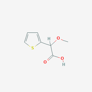 2-Methoxy-2-(thiophen-2-yl)acetic acid is a substituted acetic acid derivative featuring a methoxy (-OCH₃) group and a thiophene ring attached at the α-carbon of the carboxylic acid backbone. This compound is of interest in medicinal chemistry and materials science due to its structural versatility .