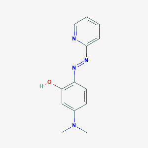 This compound acts as a multidentate ligand, capable of coordinating with metal ions through the nitrogen atom of the pyridine (B92270) ring, one of the nitrogen atoms of the azo group, and the oxygen atom of the hydroxyl group. This tridentate chelation results in the formation of stable, colored complexes. The dimethylamino group, a strong electron-donating group, plays a crucial role in enhancing the molar absorptivity of the metal complexes, thereby increasing the sensitivity of the analytical method.