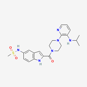 The synthesis of this compound is a multi-step process that involves the preparation of two key intermediates: 2-(1-piperazinyl)-3-[(1-methylethyl)amino]pyridine and 5-[(methylsulfonyl)amino]-indole-2-carboxylic acid . These intermediates are then coupled to form the final this compound molecule. The overall total yield of the synthesis has been reported to be approximately 34%.[4]