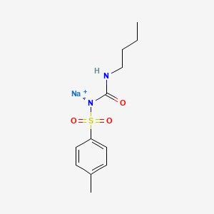 Chemically, tolbutamide (N-[(butylamino)carbonyl]-4-methylbenzenesulfonamide) represented a key structural modification from carbutamide (B1668437). pharmacompass.comnist.gov The para-amino group of carbutamide was replaced with a methyl group in tolbutamide, which reduced the compound's toxicity. youthmedicaljournal.com This modification defined tolbutamide as a cornerstone of the "first-generation" sulfonylureas. nih.govnih.gov These early compounds are characterized by relatively simple substitutions on the benzene (B151609) and urea (B33335) moieties of the core sulfonylurea structure. acpjournals.org Tolbutamide sodium is the water-soluble salt form, which is frequently used for intravenous preparations in diagnostic research. chemicalbook.com
