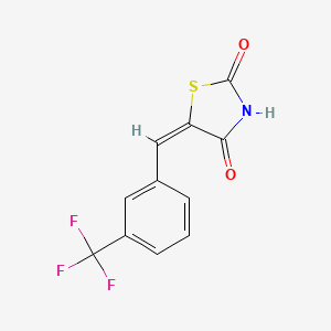 The compound (5E)-5-[[3-(trifluoromethyl)phenyl]methylidene]-1,3-thiazolidine-2,4-dione is a synthetic organic molecule characterized by its thiazolidine ring structure and the presence of a trifluoromethyl group. This unique configuration enhances its lipophilicity and biological activity, making it a subject of interest in medicinal chemistry.