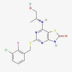 InChI=1S/C15H14ClFN4O2S2/c1-7(5-22)18-12-11-13(21-15(23)25-11)20-14(19-12)24-6-8-3-2-4-9(16)10(8)17/h2-4,7,22H,5-6H2,1H3,(H2,18,19,20,21,23)/t7-/m1/s1 | |