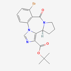 InChI=1S/C19H20BrN3O3/c1-19(2,3)26-18(25)15-16-13-8-5-9-22(13)17(24)14-11(20)6-4-7-12(14)23(16)10-21-15/h4,6-7,10,13H,5,8-9H2,1-3H3/t13-/m0/s1 | |