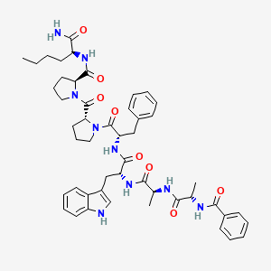 This compound is a linear heptapeptide with the structure PhCO-Ala-Ala-D-Trp-Phe-D-Pro-Pro-Nle-NH2. It was developed as a selective antagonist for the tachykinin NK2 receptor, a G protein-coupled receptor (GPCR) primarily activated by the neuropeptide neurokinin A (NKA). NK2 receptors are predominantly located in the smooth muscle of the gastrointestinal, respiratory, and urinary tracts. Their activation is implicated in various physiological processes, including smooth muscle contraction, inflammation, and nociception. Consequently, selective NK2 receptor antagonists like this compound have been investigated for their therapeutic potential in conditions such as irritable bowel syndrome and asthma.