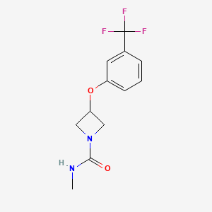 This compound, with the IUPAC name N-methyl-3-[3-(trifluoromethyl)phenoxy]azetidine-1-carboxamide, is a synthetic compound with the molecular formula C₁₂H₁₃F₃N₂O₂. Its chemical structure features an azetidine ring linked to a trifluoromethylphenoxy group and a methylcarboxamide moiety.