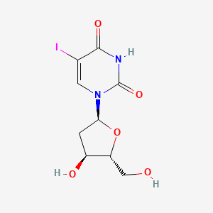 This compound, with the chemical name 1-((2R,4S,5R)-4-hydroxy-5-(hydroxymethyl)oxolan-2-yl)-5-iodopyrimidine-2,4(1H,3H)-dione, is a synthetic nucleoside analog of thymidine.[5] The key structural feature is the substitution of the methyl group at the 5-position of the uracil ring with an iodine atom. This modification is central to its antiviral activity.