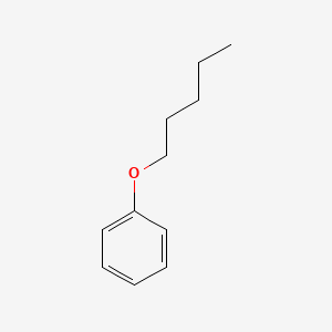 The Williamson ether synthesis is a robust and widely employed method for the preparation of symmetrical and unsymmetrical ethers. The reaction proceeds via a bimolecular nucleophilic substitution (SN2) mechanism, where an alkoxide or phenoxide ion acts as a nucleophile and displaces a halide from an alkyl halide to form an ether linkage.[1] In the context of synthesizing this compound, the reaction involves the deprotonation of phenol (B47542) to form the phenoxide ion, which then attacks a pentyl halide, typically 1-bromopentane (B41390) or 1-iodopentane.