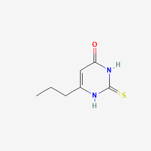 6-propyl-2-thiouracil is a pyrimidinethione consisting of uracil in which the 2-oxo group is substituted by a thio group and the hydrogen at position 6 is substituted by a propyl group. It has a role as an antithyroid drug, a carcinogenic agent, an antimetabolite, a hormone antagonist, an EC 1.14.13.39 (nitric oxide synthase) inhibitor, an antioxidant and an antidote to paracetamol poisoning. It is functionally related to a uracil.