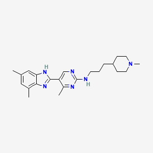 CC1=CC(=C2C(=C1)NC(=N2)C3=CN=C(N=C3C)NCCCC4CCN(CC4)C)C | |