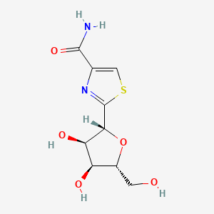 Tiazofurin is a synthetic nucleoside analogue with antineoplastic activity. This compound (TR) is anabolized intracellularly to an analogue of NAD, tiazole-4-carboxamide adenine dinucleotide (TAD), a potent inhibitor of IMP dehydrogenase (IMPDH); IMPDH is the rate-limiting enzyme for de novo purine synthesis. Inhibition of IMPDH results in reduced levels of guanylates, resulting in the inhibition tumor cell growth in vitro and in vivo. (NCI04)