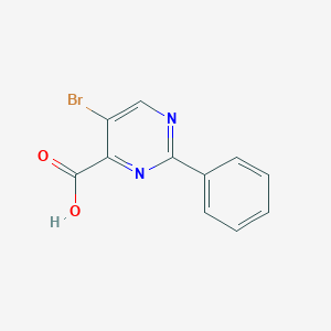 The mechanism of action of 5-Bromo-2-phenylpyrimidine-4-carboxylic acid involves its interaction with specific molecular targets, such as enzymes or receptors. The bromine atom and the phenyl group contribute to the compound’s binding affinity and specificity. The carboxylic acid group may participate in hydrogen bonding and electrostatic interactions, enhancing the compound’s overall activity.
