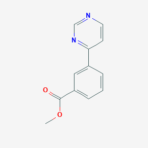 The unique structure of Methyl 3-(pyrimidin-4-yl)benzoate, which combines a pyrimidine (B1678525) ring with a benzoate (B1203000) group, makes it a candidate for development as a chemical probe. Chemical probes are small molecules used to study and manipulate biological pathways. While specific research on this compound as a probe is in early stages, related pyrimidine derivatives have been instrumental in this area. For instance, compounds with similar pyrimidine cores have been used to investigate biological processes by acting as selective ligands or inhibitors for specific proteins. The development of this compound as a chemical probe would involve synthesizing fluorescently-labeled or biotinylated versions to facilitate the tracking and identification of its binding partners within a cell, thereby elucidating its mechanism of action and potential therapeutic targets. ontosight.ai