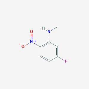 The structure of this compound consists of a benzene ring substituted with a nitro group (-NO₂) at position 2, a fluorine atom (-F) at position 5, and an N-methylamino group (-NHCH₃) at position 1.