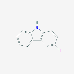 This compound is an aromatic heterocyclic organic compound that serves as a pivotal building block in the synthesis of advanced functional materials and complex organic molecules. Its structure, featuring a carbazole core with a reactive iodine substituent, makes it a versatile precursor, particularly in the fields of organic electronics and medicinal chemistry. The presence of the carbon-iodine bond allows for a wide range of post-synthesis modifications through various cross-coupling reactions, enabling the fine-tuning of molecular properties for specific applications. This guide provides a comprehensive overview of the structure, properties, synthesis, and reactivity of this compound for researchers, scientists, and professionals in drug development and materials science.