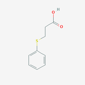 This compound, also known as 3-(phenylsulfanyl)propanoic acid, is a carboxylic acid containing a phenylthio ether linkage. Its chemical and physical properties are summarized below.