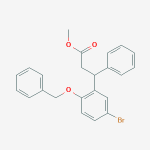 Methyl 3-(2-(benzyloxy)-5-bromophenyl)-3-phenylpropanoate is an organic compound that belongs to the class of esters It is characterized by the presence of a benzyloxy group, a bromophenyl group, and a phenylpropanoate moiety