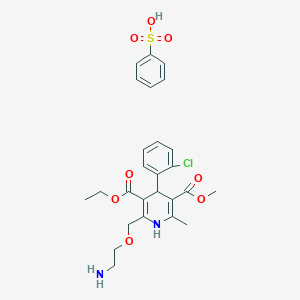 InChI=1S/C20H25ClN2O5.C6H6O3S/c1-4-28-20(25)18-15(11-27-10-9-22)23-12(2)16(19(24)26-3)17(18)13-7-5-6-8-14(13)21;7-10(8,9)6-4-2-1-3-5-6/h5-8,17,23H,4,9-11,22H2,1-3H3;1-5H,(H,7,8,9) | |