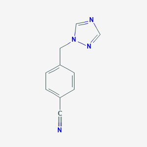 The synthesis of this compound typically involves the nucleophilic substitution reaction between a salt of 1,2,4-triazole and a 4-(halomethyl)benzonitrile derivative. Several methods have been developed to optimize the yield and regioselectivity of this reaction, minimizing the formation of the undesired 4-(4H-1,2,4-triazol-4-yl)methyl)benzonitrile isomer.