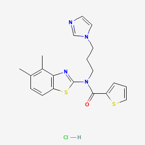 The synthetic routes and reaction conditions for N-(4,5-dimethyl-1,3-benzothiazol-2-yl)-N-[3-(1H-imidazol-1-yl)propyl]thiophene-2-carboxamide hydrochloride are not explicitly detailed in the available literature. it is typically synthesized through standard organic synthesis techniques involving multiple steps of chemical reactions. Industrial production methods would likely involve optimization of these synthetic routes to ensure high yield and purity.