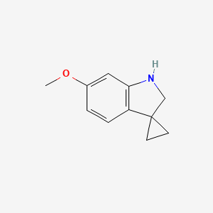 The mechanism by which 6’-Methoxyspiro[cyclopropane-1,3’-indoline] exerts its effects involves its interaction with molecular targets such as enzymes and receptors. The spirocyclic structure allows for a unique binding mode, which can inhibit or activate specific pathways. For example, its interaction with certain enzymes can lead to the inhibition of enzymatic activity, making it a potential candidate for enzyme inhibitor drugs. The methoxy group and the cyclopropane ring also contribute to its binding affinity and specificity.