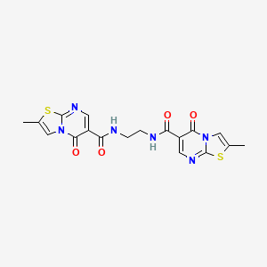 N,N'-(ethane-1,2-diyl)bis(2-methyl-5-oxo-5H-thiazolo[3,2-a]pyrimidine-6-carboxamide) is a complex organic compound characterized by its unique structure, which includes two thiazolo[3,2-a]pyrimidine rings connected by an ethane-1,2-diyl linker