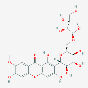 Types of Reactions: 2-[(2S,3R,4R,5S,6R)-6-[[(2R,3R,4R)-3,4-dihydroxy-4-(hydroxymethyl)oxolan-2-yl]oxymethyl]-3,4,5-trihydroxyoxan-2-yl]-1,3,6-trihydroxy-7-methoxyxanthen-9-one undergoes various chemical reactions, including oxidation, reduction, and substitution reactions. These reactions are essential for modifying the compound to enhance its properties or to study its behavior under different conditions .