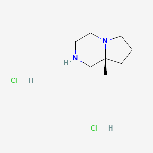Synthetic Routes and Reaction Conditions: The synthesis of (8aR)-8a-methyl-octahydropyrrolo[1,2-a]pyrazine dihydrochloride typically involves multi-step organic reactions. One common method includes the cyclization of appropriate precursors under controlled conditions. For instance, starting from a suitable amine and ketone, the compound can be synthesized through a series of condensation and reduction reactions. The reaction conditions often require specific catalysts, solvents, and temperature controls to ensure the desired stereochemistry and yield.