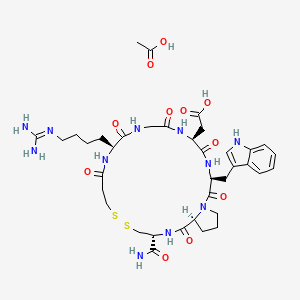 InChI=1S/C35H49N11O9S2.C2H4O2/c36-30(51)25-18-57-56-13-10-27(47)42-22(8-3-4-11-39-35(37)38)31(52)41-17-28(48)43-23(15-29(49)50)32(53)44-24(14-19-16-40-21-7-2-1-6-20(19)21)34(55)46-12-5-9-26(46)33(54)45-25;1-2(3)4/h1-2,6-7,16,22-26,40H,3-5,8-15,17-18H2,(H2,36,51)(H,41,52)(H,42,47)(H,43,48)(H,44,53)(H,45,54)(H,49,50)(H4,37,38,39);1H3,(H,3,4)/t22-,23-,24-,25-,26-;/m0./s1 | |