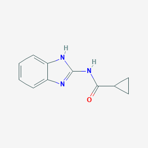 This compound is a benzimidazole derivative, which is known for its broad spectrum of biological activities, including antibacterial, antifungal, and anticancer properties. The synthesis typically involves the reaction of benzimidazole with cyclopropanecarboxylic acid derivatives under specific conditions to yield the desired amide.