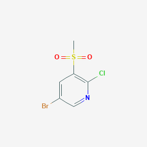 This compound (molecular formula: $$ \text{C}6\text{H}5\text{BrClNO}2\text{S} $$, molecular weight: 270.53 g/mol) features a pyridine ring substituted at positions 2 (chlorine), 3 (methylsulfonyl), and 5 (bromine). The methylsulfonyl group ($$-\text{SO}2\text{CH}_3$$) imparts strong electron-withdrawing effects, lowering the electron density of the aromatic system and facilitating nucleophilic aromatic substitution (NAS) and metal-catalyzed cross-coupling reactions.