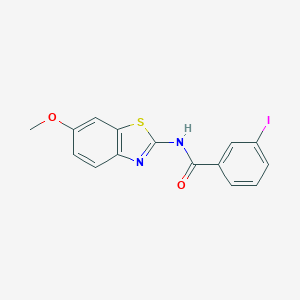 InChI=1S/C15H11IN2O2S/c1-20-11-5-6-12-13(8-11)21-15(17-12)18-14(19)9-3-2-4-10(16)7-9/h2-8H,1H3,(H,17,18,19) |