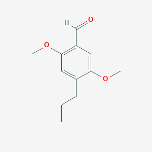 This compound is a substituted aromatic aldehyde that has garnered interest as a specialized intermediate in organic synthesis. Its structure, featuring two methoxy (B1213986) groups and a propyl group on the benzene ring, makes it a precursor for more complex molecules. The specific arrangement of these substituents influences the reactivity of the aldehyde functional group and provides a scaffold for further chemical modification.