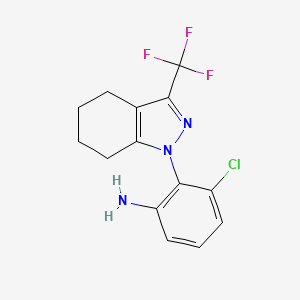 The mechanism of action of 3-Chloro-2-(3-(trifluoromethyl)-4,5,6,7-tetrahydro-1H-indazol-1-yl)aniline involves its interaction with specific molecular targets, such as enzymes or receptors. The trifluoromethyl group can enhance the compound’s binding affinity and selectivity, while the indazole ring can facilitate interactions with aromatic residues in the target protein . These interactions can modulate the activity of the target, leading to the desired biological effect.