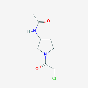 The mechanism of action of N-[1-(2-Chloro-acetyl)-pyrrolidin-3-yl]-acetamide involves its interaction with specific molecular targets. The chloroacetyl group can form covalent bonds with nucleophilic sites on proteins or enzymes, potentially inhibiting their activity. The pyrrolidine ring may also contribute to the compound’s binding affinity and specificity for certain biological targets.