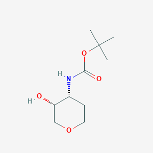 The mechanism by which tert-butyl N-[(3R,4R)-3-hydroxytetrahydropyran-4-yl]carbamate exerts its effects depends on its application. In medicinal chemistry, it may interact with specific enzymes or receptors, modulating their activity. The molecular targets and pathways involved often include inhibition of enzyme activity or alteration of receptor binding, leading to therapeutic effects.