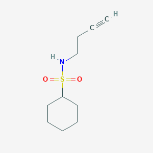 The synthesis of N-(but-3-yn-1-yl)cyclohexanesulfonamide typically involves the reaction of cyclohexanesulfonyl chloride with but-3-yn-1-amine. The reaction is carried out in the presence of a base, such as triethylamine, to neutralize the hydrochloric acid formed during the reaction. The reaction is usually conducted in an organic solvent like dichloromethane at room temperature.
