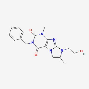 3-benzyl-8-(2-hydroxyethyl)-1,7-dimethyl-1H-imidazo[2,1-f]purine-2,4(3H,8H)-dione is a novel compound belonging to the imidazopurine class. Its unique structural features, including a fused imidazole and purine structure with a benzyl group and hydroxyethyl substituent, suggest significant potential for biological activity, particularly in medicinal chemistry.