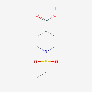This compound, with CAS Number 702670-32-4, is a heterocyclic organic compound that has emerged as a valuable building block in contemporary drug discovery and development. Structurally, it features a piperidine-4-carboxylic acid core, also known as isonipecotic acid, which is a conformationally restricted analog of the neurotransmitter γ-aminobutyric acid (GABA). The key distinguishing feature is the ethylsulfonyl group attached to the piperidine nitrogen. This modification significantly alters the parent molecule's electronic properties and steric profile, offering medicinal chemists a powerful tool to modulate physicochemical and pharmacological characteristics such as solubility, metabolic stability, and target-binding interactions.