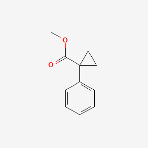 The mechanism of action of methyl 1-phenylcyclopropane-1-carboxylate involves its interaction with various molecular targets. The cyclopropane ring can undergo ring-opening reactions, leading to the formation of reactive intermediates that can interact with biological molecules. These interactions can modulate biochemical pathways and exert biological effects .